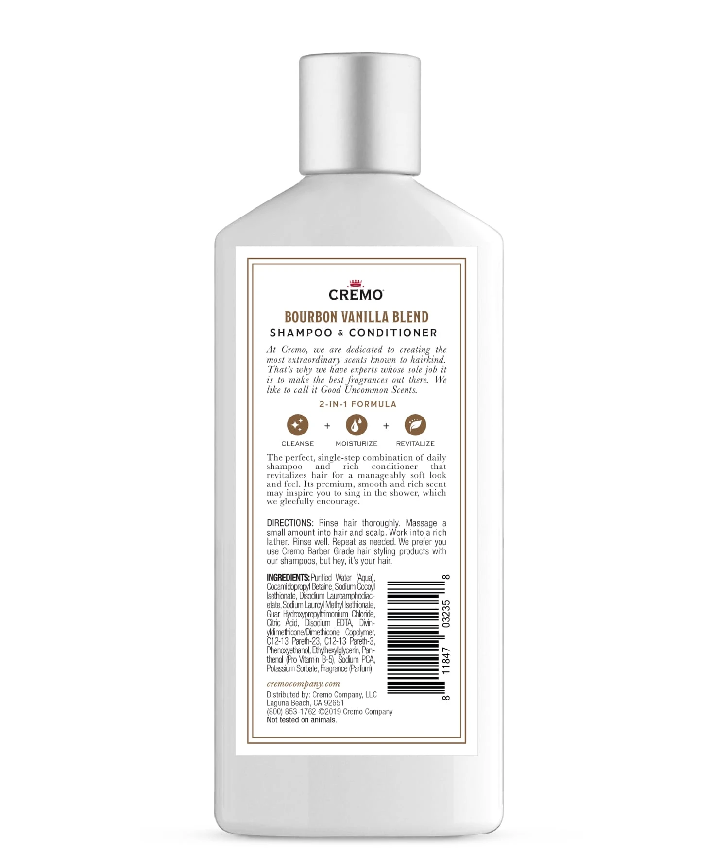 A distinctive scent of spiced bourbon and oaked vanilla in a 2-in-1 Shampoo & Conditioner. This ultra-rich lathering formula thoroughly cleanses and moisturizes in one easy step, leaving hair looking and feeling tip-top.