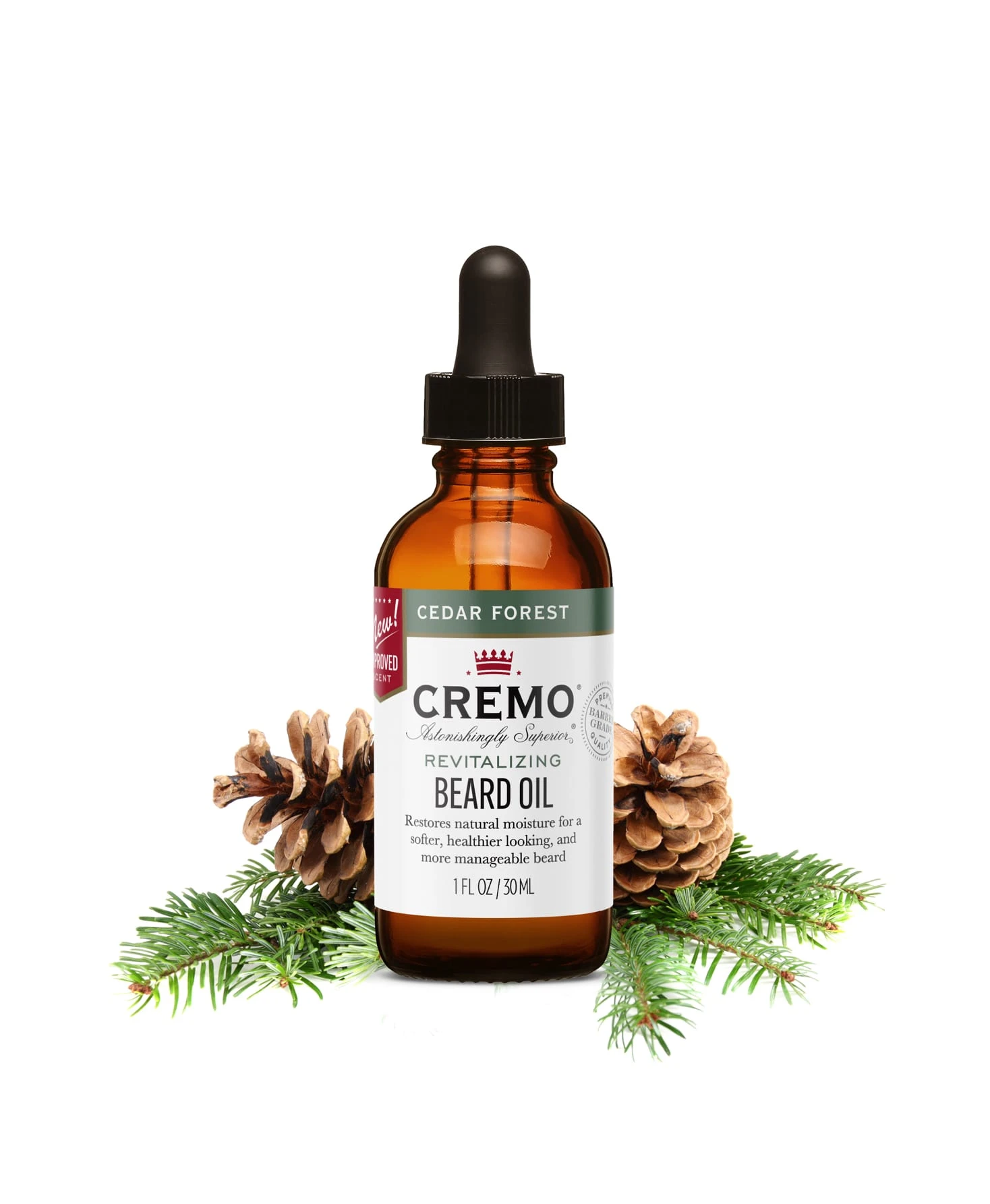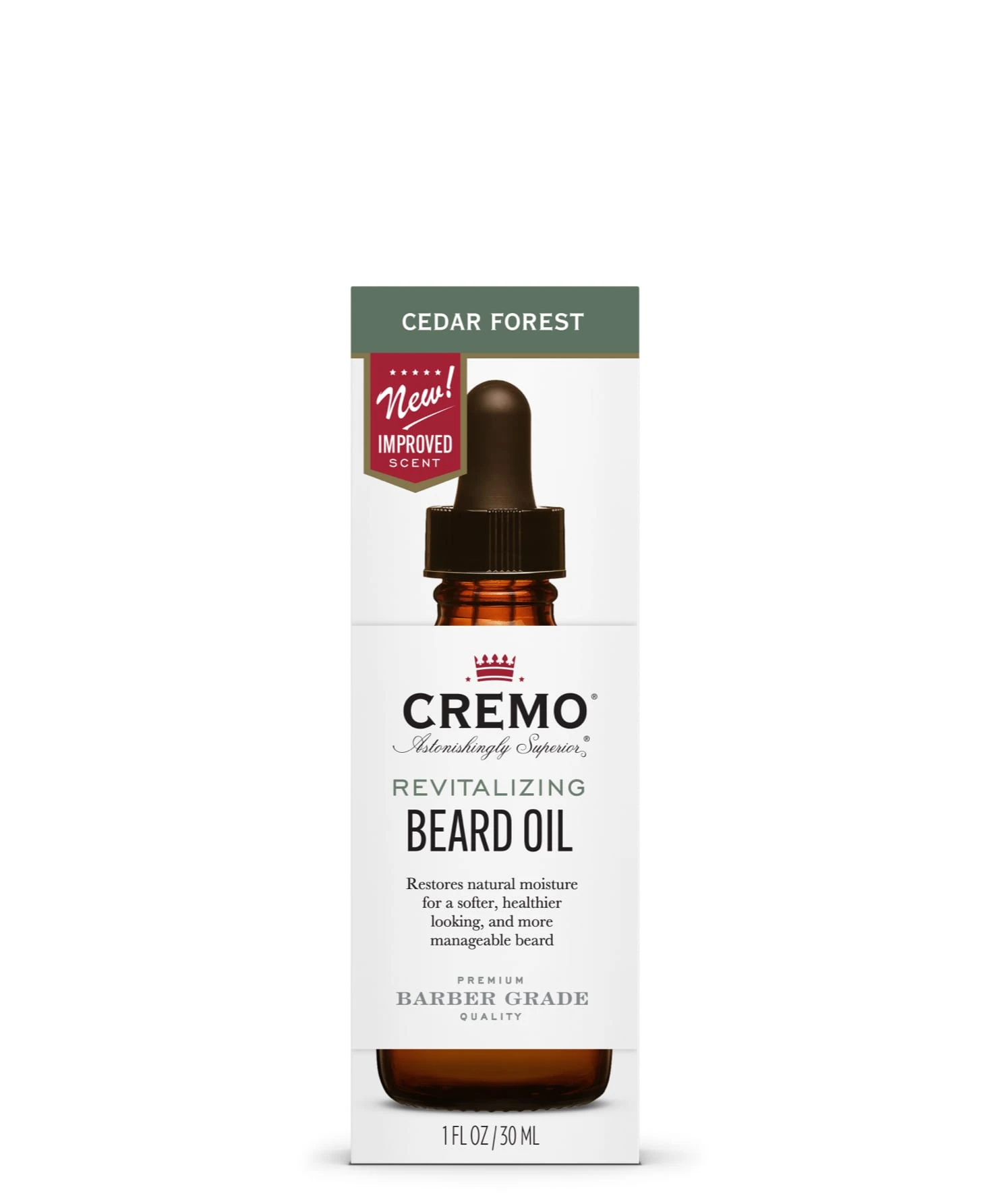 Our improved Cedar Forest scent. Cremo beard oil helps to relieve itchiness and dryness, leaving your beard looking healthy and smelling fresh. Our soothing formula contains the highest quality natural Argan and Jojoba oils and other carefully curated ingredients. Expertly blended by skin care professionals to help restore and condition your beard.