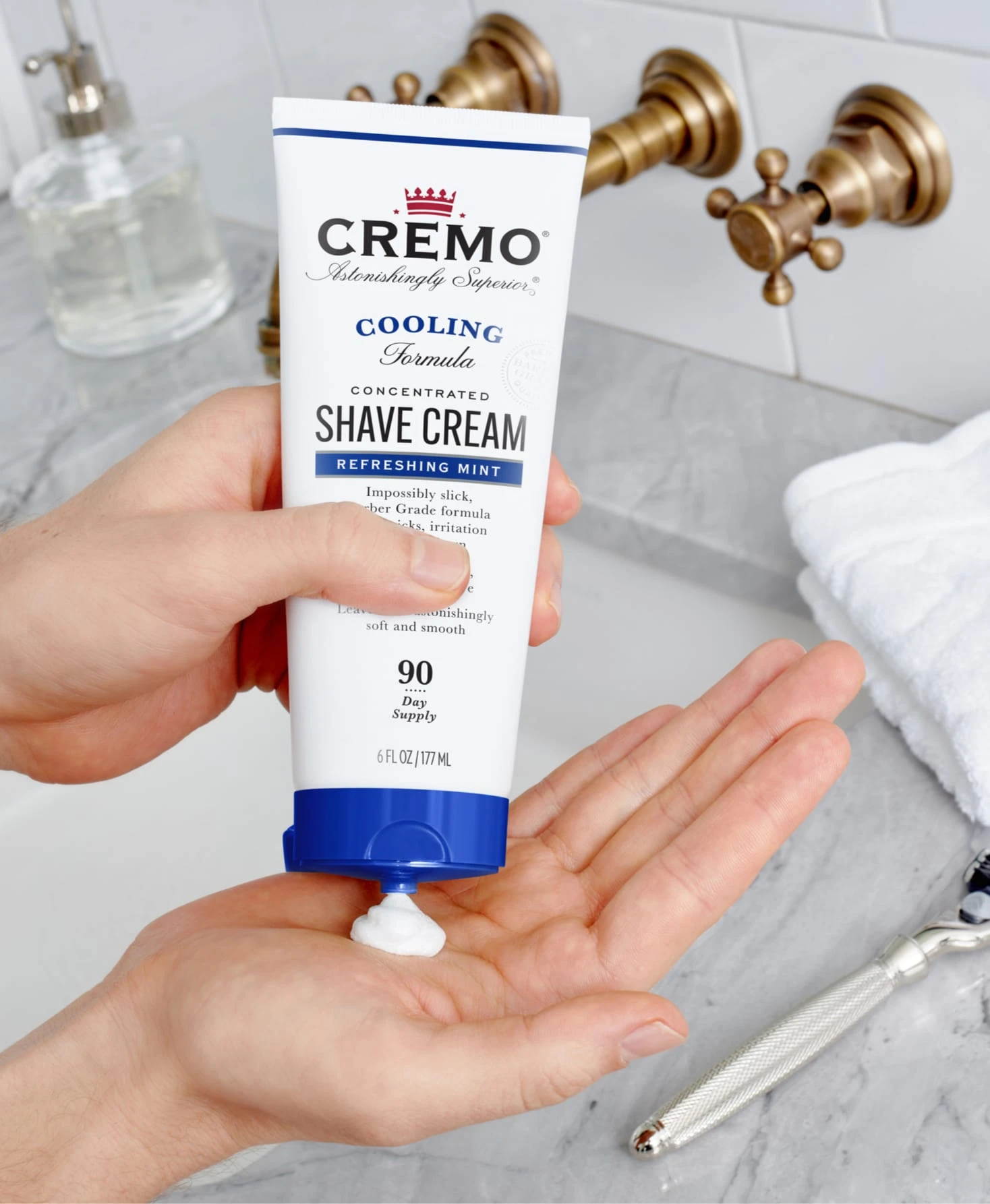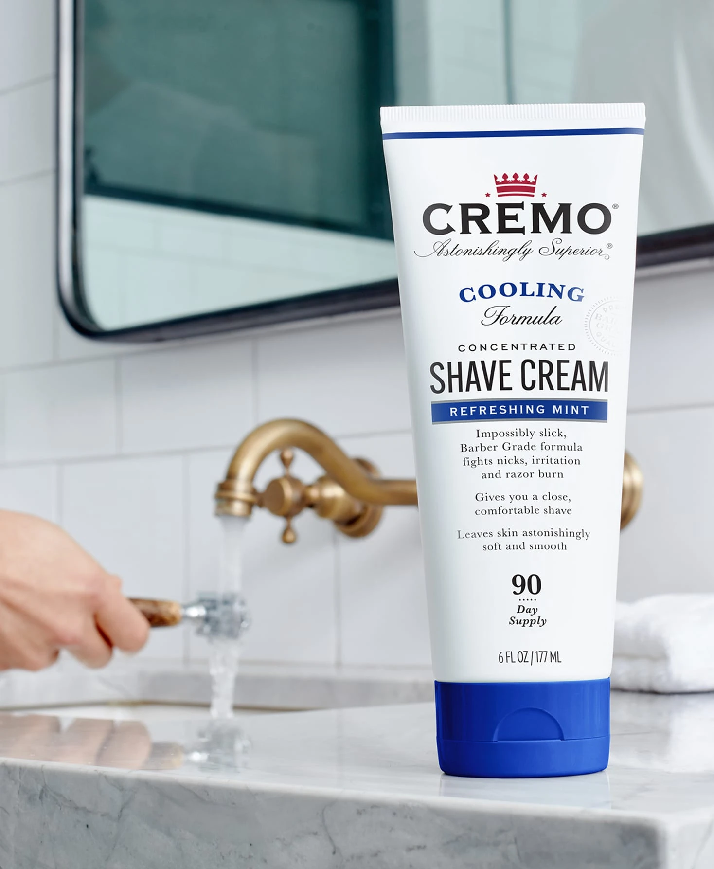 Crisp and refreshing, our Cooling Shave Cream contains a lively blend of peppermint, menthol and tea tree oil to leave your skin cool and invigorated while fighting razor burn and irritation. Cremo contains unique molecules that become impossibly slick when mixed with water, so your blade can glide effortlessly over skin. You’ll enjoy a clean, comfortable shave and astonishingly smooth skin.