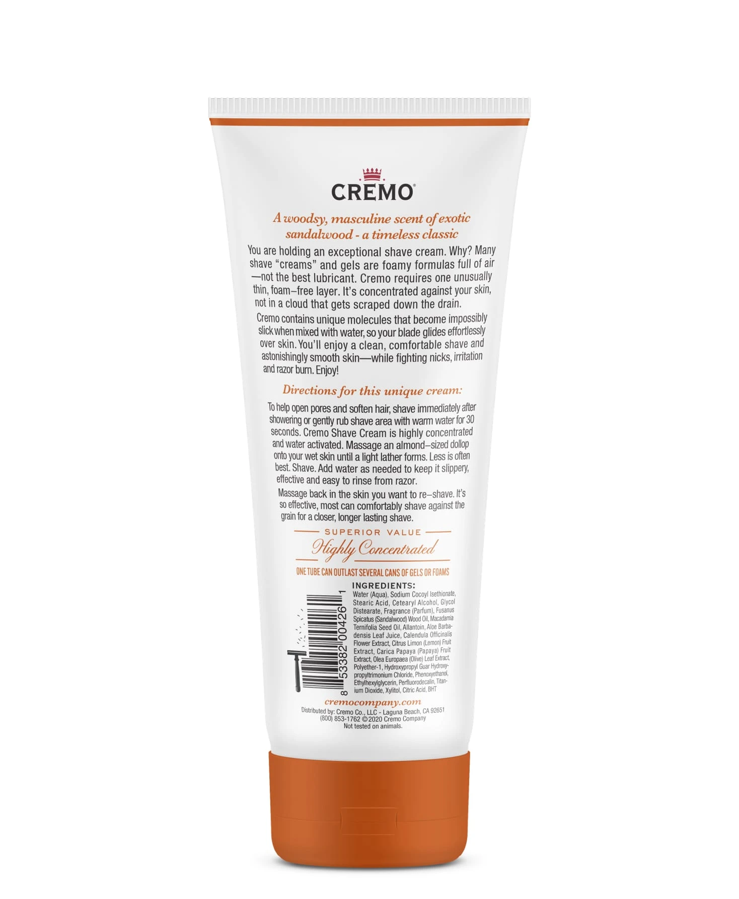 Our same original impossibly slick formula that fights razor burn and skin irritation with a woodsy, masculine scent. Cremo contains unique molecules that become impossibly slick when mixed with water, so your blade can glide effortlessly over skin. You’ll enjoy a clean, comfortable shave and astonishingly smooth skin while fighting nicks, razor burn and irritation.