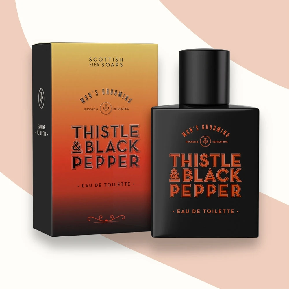Embrace the wild spirit of Scotland with the Thistle & Black Pepper Eau de Toilette. This dynamic fragrance opens with a lively burst of black pepper and spice, evolving into warm notes of amber as it lingers on your skin. Complemented by the woody aromas of whisky, musk and amber, this sophisticated scent captures the essence of rugged landscapes and timeless elegance, making it the perfect addition to your grooming routine.